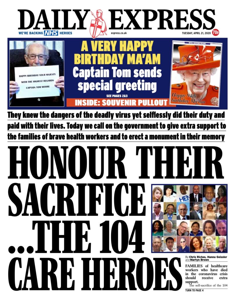 The Express leads with the number of healthcare workers who’ve lost their lives to the virus, a story that’s been getting a fair amount of attention over the last few days because it seems to show the price they’re paying for the PPE shortage. On BBC Breakfast yesterday it was claimed that 43 NHS workers have died, and the presenter took if for granted that these deaths came about because of their exposure to patients infected with COVID-19. But tragic though any death is, it is worth pausing to consider whether NHS workers really are more likely to die from COVID-19 than other members of the working population. One of the commentators on this site, Guy de la Bédoyère, has crunched the numbers. The NHS employs roughly 1.5 million people across the UK, which is about 1/43 of the UK population. That figure is also about 1/25 of the population of working age (20-65). To date 1,272 people aged 20-59 have died of COVID-19 in the UK, 1/25th of which is 50 – or slightly more than the actual number of NHS workers who have died, at least according to BBC Breakfast. In other words, just as a function of the general risk to which the whole UK population is subject we would expect at least 50 NHS workers to have died anyway this year, regardless of any higher risk they might face from their jobs. Having said that, 53% of NHS employee are 44 or younger – under-45s are at a lower risk of dying from coronavirus than over-45s – and it’s a safe bet the majority don’t have underlying health conditions. So in all likelihood NHS workers are more vulnerable. Nonetheless, taken by themselves, the raw figures suggest they are less likely to die of coronavirus than the general population. To mean anything, the headline figures need to be put into context, something few journalists seem willing to do.