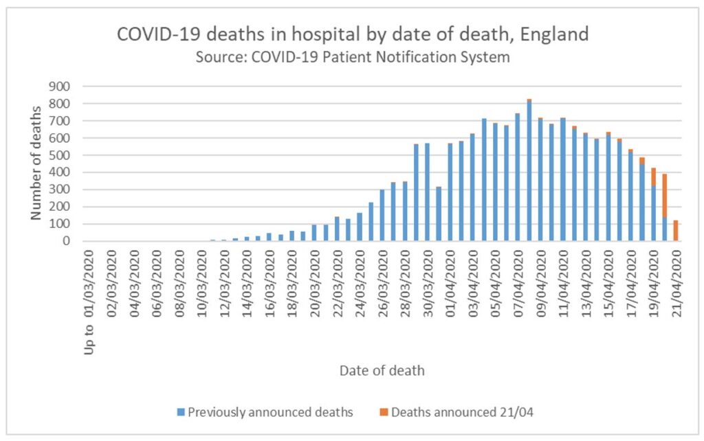 I have good news for Mr Raab in that case. There’s growing evidence that the daily death toll peaked on April 8th, as can be seen on the NHS England graph below: