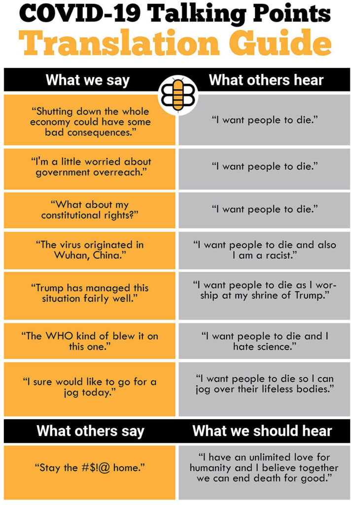 Thanks to all those people who donated to Lockdown Sceptics yesterday – it’s those donations that enable me to devote so much time to this site. If you’d like to donate, you can do so here. I’ll leave you with this table. It was originally produced by the Babylon Bee in a different form, but I’ve adapted it slightly (with help from Ian Rons).
