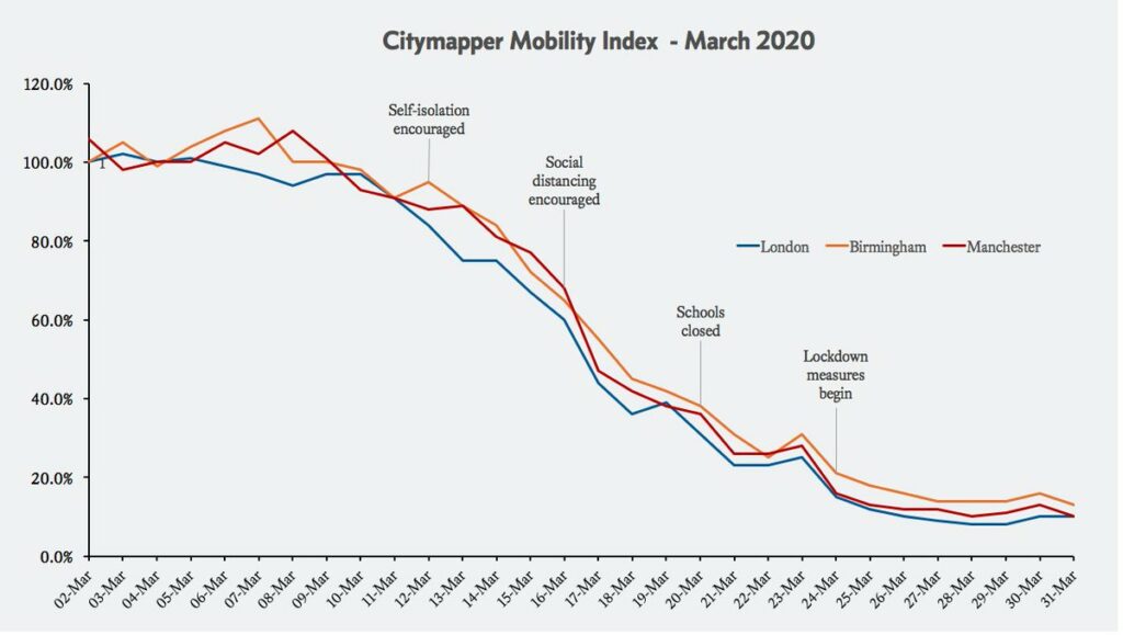 As the lockdown eases and we survey the economic wreckage, more and more people will start asking whether the cure was worse than the disease. And the evidence that the more modest social distancing measures put in place by the Government on March 16th were sufficient to “flatten the curve” continues to mount. A reader has sent me this interesting graph showing the use of mass transport in London, Birmingham and Manchester declining rapidly before the lockdown was imposed: