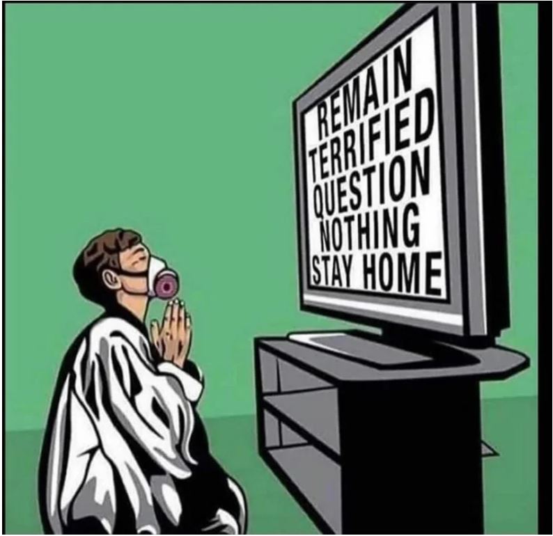 TV creates an ideal medium via which to conduct this form of hypnosis, not least because the news comes sandwiched between movies and soap operas which engage the imaginative and emotional elements of the mind. These, maintained by fictionalised versions of reality, provide the heightened state that renders the subject amenable to be lured into a kind of trance. Once achieved, the trance can be reactivated at will in anyone whose attention, primed on fictional narratives, remains in this state of focused imaginative attention, being highly prone to easy emotional arousal. The purpose is to tap into that part of the subconscious dealing with emotions. When in a self-induced trance, in the grip of rage, hatred, fear, anxiety, sadness, worry, envy, greed, selfishness, humans tend to become cut off from their thinking brains and thereby susceptible to adopting a locked-in, limited view of reality. In the lockdown episode, fear has been the chief emotional trigger imposed by the controllers to be manipulated to further the entrancement process.