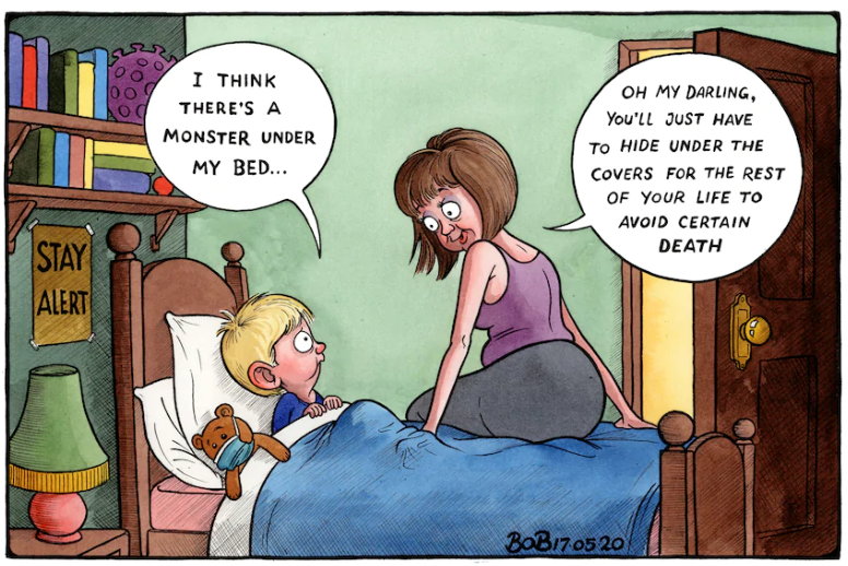 We are abysmal at risk assessment. I used to run courses on positive risk management with care and health organisations (why it’s OK to take risks, because they have benefits). The Covid crisis is the ultimate and logical conclusion to our risk-averse culture. How often do we hear the words: “You can’t do that! It’s against health and safety!” And yet, the Health and Safety Executive is about the only Government body I know which has a sense of humour. It used to send out a regular “Health and Safety Myths” email, analysing all the things workers had been told by their bosses they couldn’t do because of “health and safety”, but pointing out that the danger was minor, and, importantly, not doing whatever it was created more danger. Example: teachers at a school were told no longer to use step ladders to access books on a high shelf, in case they fell off the ladder. Results: (a) they stood on chairs instead and fell off; and (b) the children’s education was damaged, because they couldn’t read the interesting books on the high shelf.