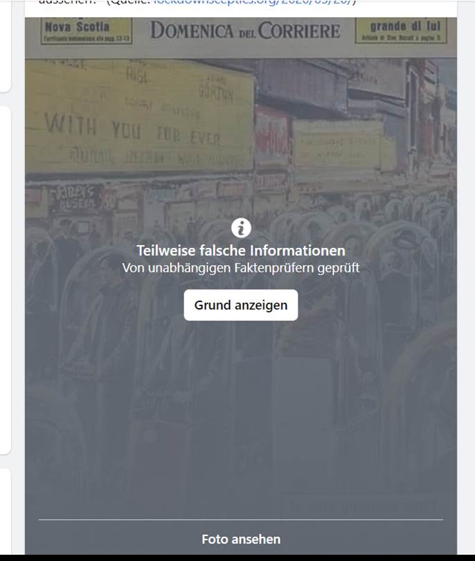 Last week, I posted a picture a reader had sent me of a drawing that had appeared in an Italian magazine in 1962 depicting life in 2022 because it seemed eerily prescient. The reader had discovered it in a Facebook group dedicated to sci-fi memorabilia, but don’t try and repost it on Facebook because the moderators won’t let you. A reader in Germany tells me he got the above message when he tried to do that, informing him it was “Partially wrong information. Tested by independent fact checker.” It included a link to an article on a Turkish website by Ali Osman Arabaci, presumably the “independent fact checker” being referred to. Arabaci writes:
