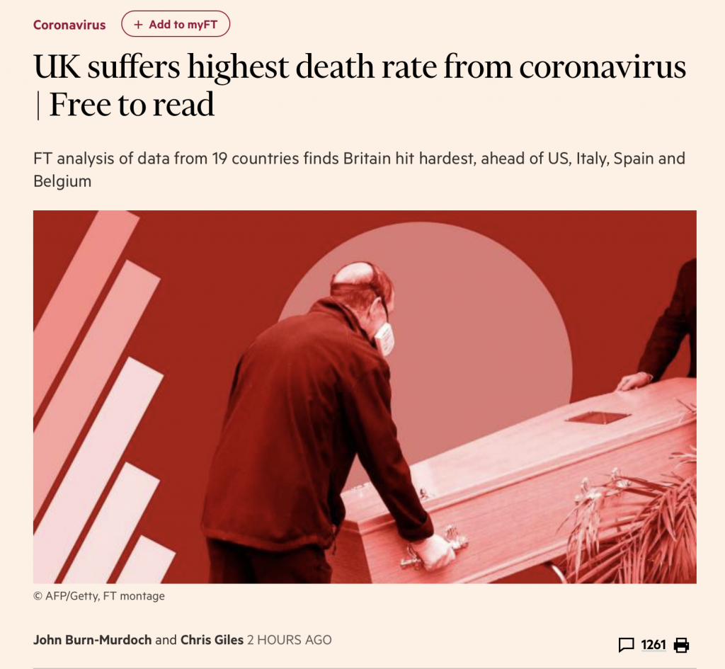 Costello is a long-standing member of the Labour Party and Robert West is a leftie who retweets all the usual suspects – George Monbiot, Carole Cadwalladr, Paul Mason, James O’Brien, Owen Jones, etc. They have a vested interest in eliding “excess deaths” with deaths from COVID-19 since it supports their contention that the Government’s delay in locking down led to a higher number of Covid fatalities. But I expected better from the FT.