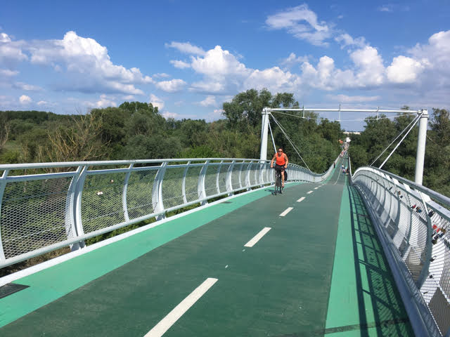 Better known as the “Chuck Norris” Bridge, after a public poll revealed this as the most popular name, the fine cycling bridge stands as a powerful symbol of unity and freedom of travel between east with west, something not possible before 1992. November of last year marked the 30th anniversary of the end of socialism. This was the last time we cycled over the bridge, where a temporary mock barrier had been erected and visitors were handed “visas” as a reminder that free travel across the Moravia should not be taken for granted. Never could we have imagined that the bridge would once again be closed so soon, albeit for a different reason.