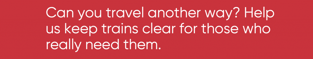 Can you travel another way? Help us keep trains clear for those who really need them.
