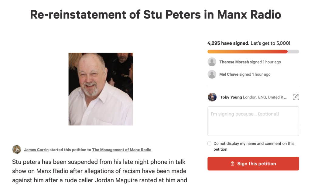 A petition has been started by some Isle of Man locals in support of Stu. It now has over 6,000 signatures. Please sign it to show your support for free speech.