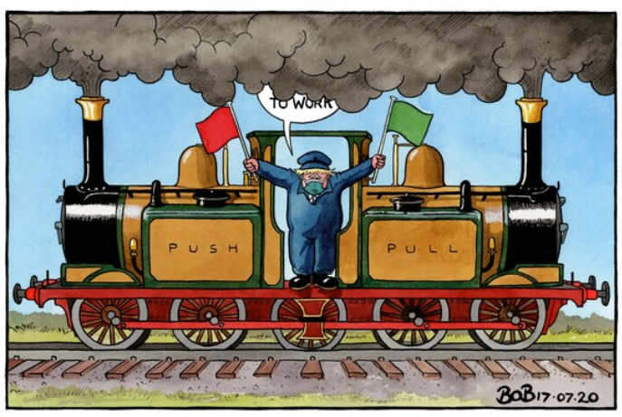 I’m fortunate enough to have a second home in Waterford County in the Republic of Ireland where I also have an ongoing project. Converting a cowshed in to an events venue. When lockdown started I was in the UK. Managed to return to Ireland end of May and was expecting strict protocols. However, to my delight I found a healthy disregard to the regs as only the Irish know how. No queues at supermarkets, no face nappies. No pubs open, but people meeting on beaches and in each others gardens for beer and company and using their common sense. At one of these BBQs I was informed by a member of the emergency services that the total number of cases in the whole of Waterford County was 166, no deaths and I had more chance of being killed by a cow. The Government were accelerating easing of restrictions. Hotels and gastro pubs, hair salons, beauty parlours would all reopen on July 10th with full reopening of all pubs on July 20th. Happy days. They even came up with a brilliant new slogan: “Take Responsibility, Use Your Common Sense.” Why hadn’t Mr Johnson thought that one up?