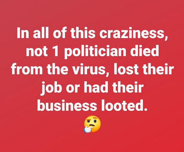 “…don’t blithely assume the economy is reopening and things will continue to improve. The nation is under the control of public health traitors. They can declare “new waves” of cases. They can invent pretexts at the drop of a hat, and governors and mayors can declare lockdowns again. This is not over. The economic war against the people is being waged to destroy America.”