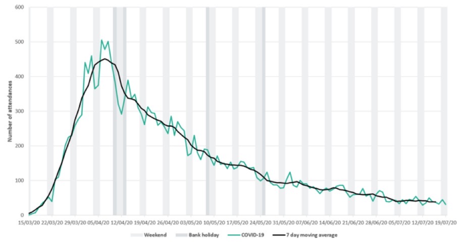 Again, no evidence was presented to show that the virus isn’t under control. On the contrary, PHE published data showing that the number of people turning up at hospital Emergency Departments with Covid-like symptoms has declined since its peak in early April: