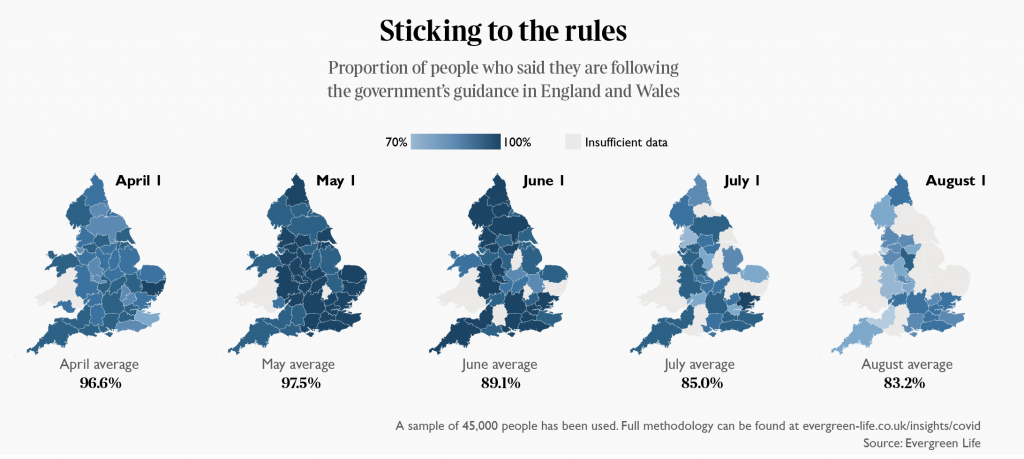 Just as bad is the Let’s Get Back advert the government put out at the end of July. “You can have the real normal back if you just get tested” (so we can lock down various parts of the country). It was plastered with negative comments until they realised they’d screwed up by leaving the comments section open.