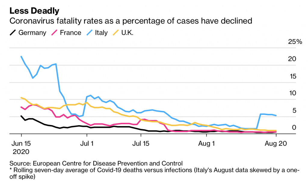 It’s not just Spain. The data on the mortality percentage of the first wave vs the second and the pattern across Europe is striking.