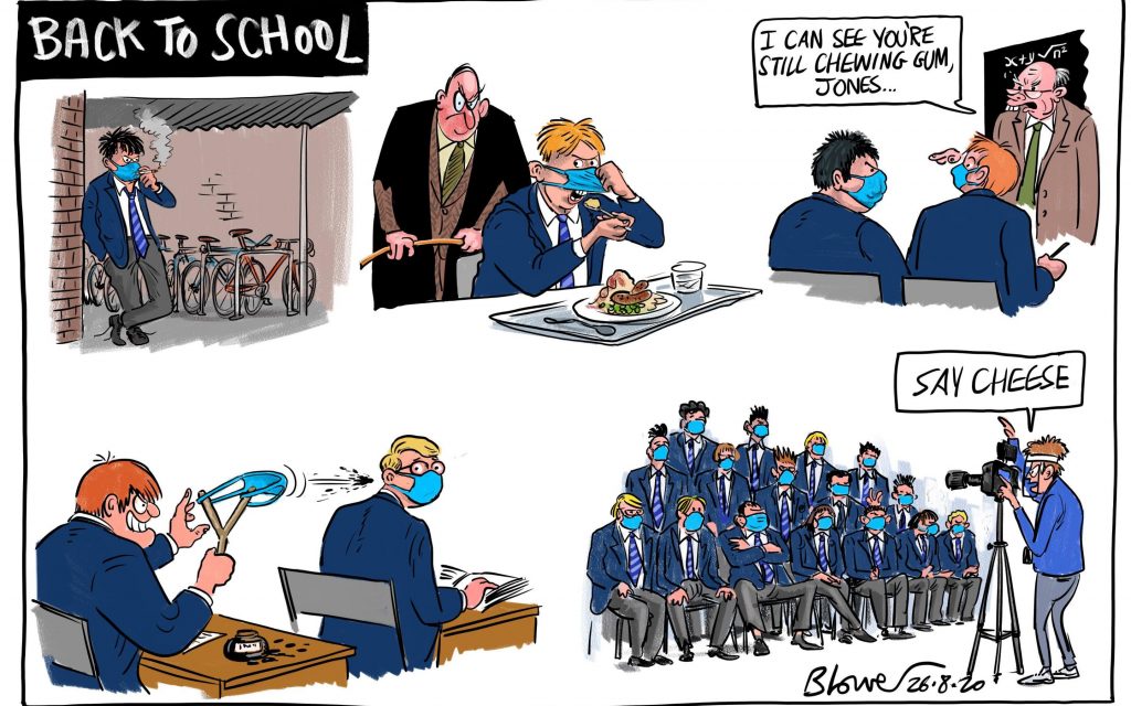 But now he’s changed his mind – apparently influenced by Nicola Sturgeon’s decision to make face coverings mandatory in Scottish secondary schools. Henceforth, kids aged 11 and older will have to wear masks in local lockdown areas. Not so safe, then. Talk about mixed messages! The Prime Minister’s default response whenever he’s asked a question of vital national importance is to launch into his Vicky Pollard impression: “No but, yeah but…”