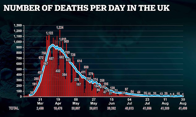 The country’s death toll is remaining low as just one person died after testing positive for the disease bringing the UK’s total fatalities during the pandemic to 41,499.