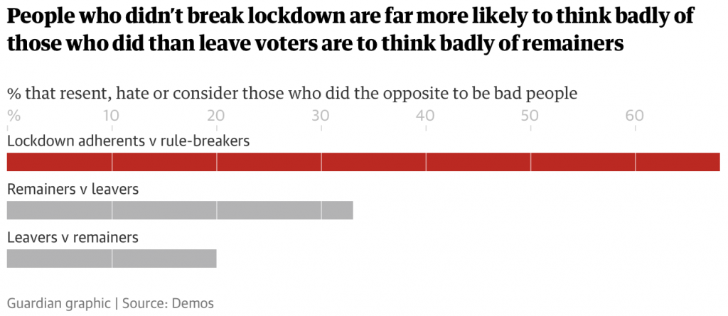 According to some polling in the Guardian, Covid is causing even more acrimony and division than Brexit!