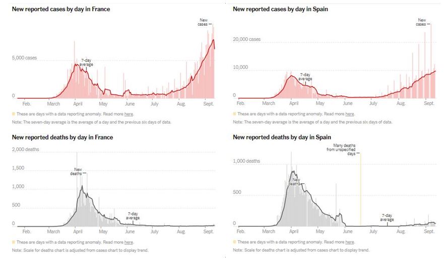 A huge rise in cases positive tests, and little else. Hospitals in some areas such as Madrid have seen a gentle rise in COVID-19 admissions, but nothing they can’t handle or to indicate runaway growth like in March. Sweden, meanwhile, is seeing an ongoing decline in deaths and cases and a strong economic recovery β the most likely explanation for which is the emergence of population immunity at lower than anticipated antibody levels, as Professor Sunetra Gupta has long argued.