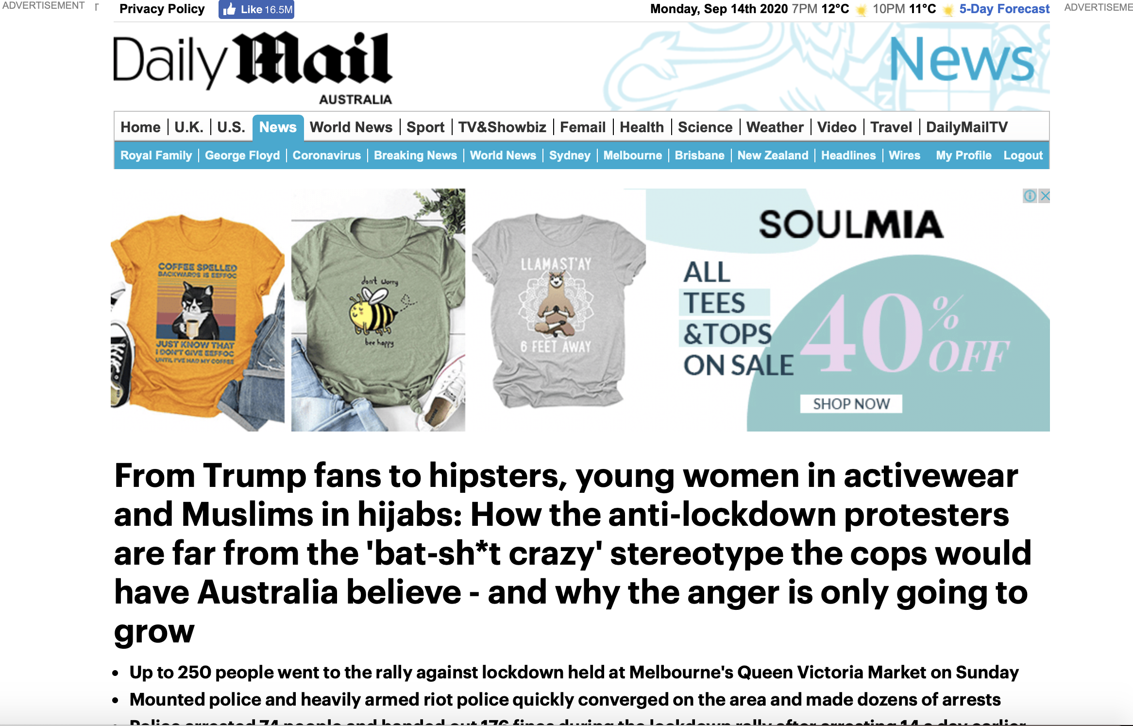 Lockdown protests in Melbourne, capital city of the People’s Democratic Republic of Victoria, ended in 74 arrests and nearly 200 fines yesterday. News.com.au has the story and footage.
