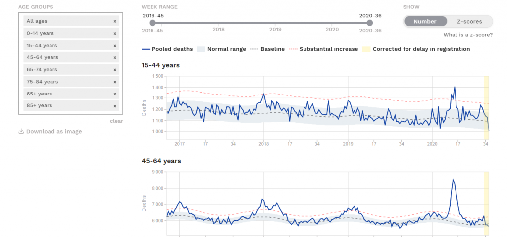 From www.euromomo.com: The excess mortality seen in these age groups starts with lockdowns and cannot be due to COVID-19