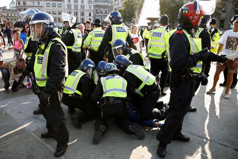 So let me get this straight. When large groups of protestors gather in Central London to proclaim their allegiance with a Neo-Marxist group that wants to defund the police, end the nuclear family and dismantle capitalism, the police fall to one knee to show their respect. But when a small group of protestors gather in Central London to protest about the suspension of our civil liberties, the police baton charge them.