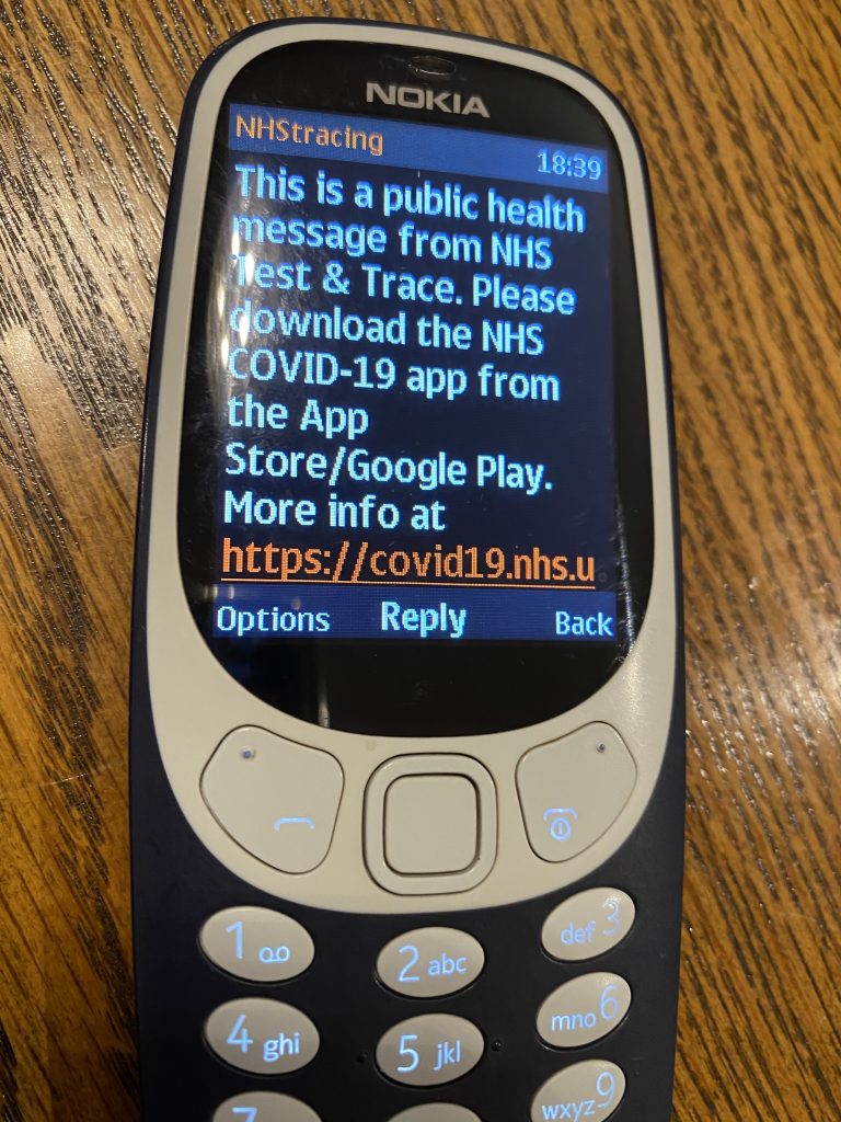 In a cock-up that will surprise absolutely no one, NHS Test and Trace is sending texts to ancient Nokia phones telling their owners to to download the COVID-19 app. Er, what? A reader has been in touch to tell me her 88 year-old mother got this message yesterday and was left feeling somewhat confused. She sent me a photo of her mum’s phone.