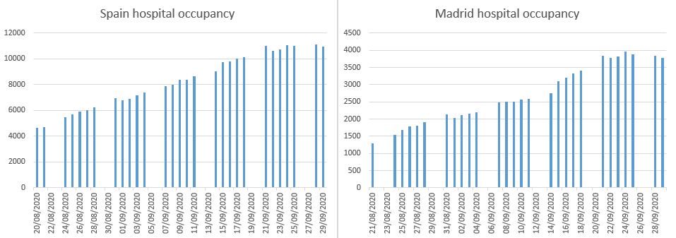 What’s happening in the hospitals right now? Here are the graphs for Spain and Madrid: