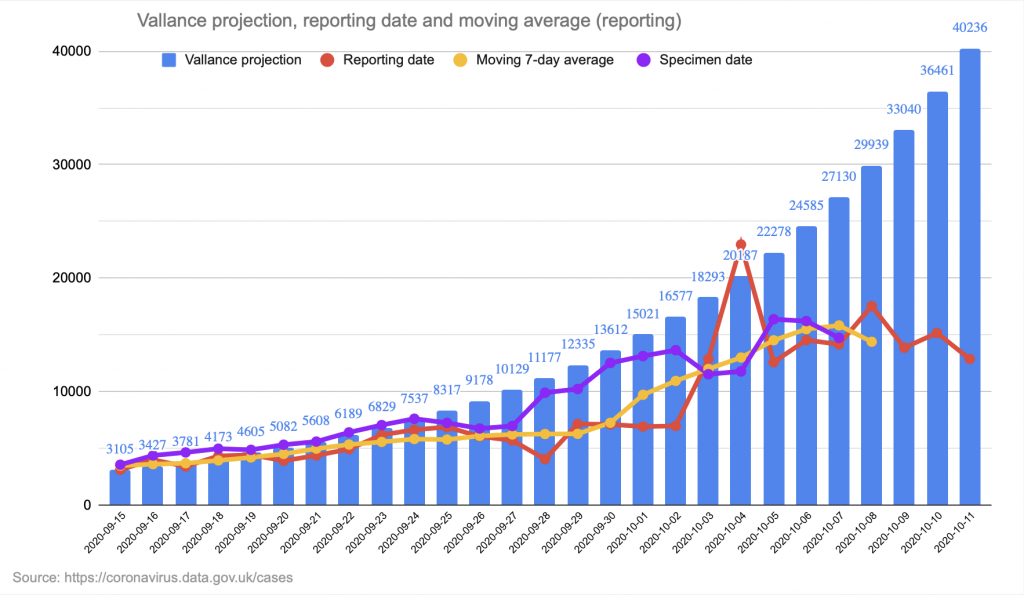 We put the doubling to the test by creating a tracker of the projection. At the moment there is a significant divergence in the case data with the 49,000 cases that were projected by the 13 Oct. We will keep this tracker up to date to monitor the changes.