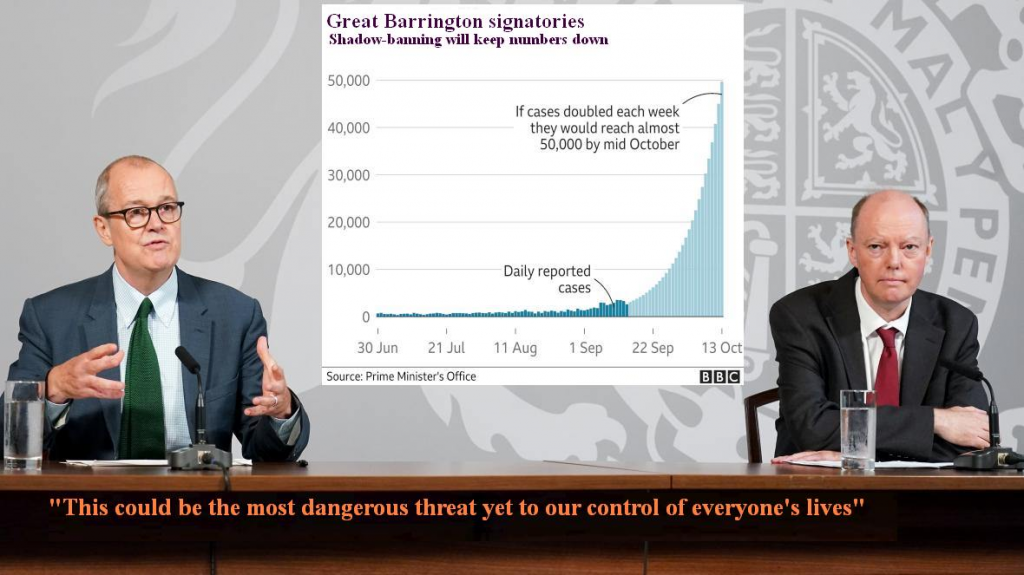 The Great Barrington Declaration, a petition started by Professor Martin Kulldorff, Professor Sunetra Gupta and Professor Jay Bhattacharya calling for a strategy of “Focused Protection” (offer protection to the elderly and the vulnerable and let everyone else get on with life), was launched last week and the lockdown zealots have been doing their best to discredit it. If you Google it, the top hit you get is a smear piece in the Guardian headlined: “Herd immunity letter signed by fake experts including ‘Dr Johnny Bananas’.” (Freddie Sayers at UnHerd warned us about this hit job the day before it appeared). On the bright side, Google UK has stopped shadow banning it, so the actual Declaration now shows up in the search results – although discussion of it has been censored by Reddit. The reason the zealots hate it, of course, is that it gives the lie to their claim that “the science” only supports a suppression strategy. These three scientists are every bit as eminent – more eminent – than the pro-lockdown fanatics, so expect no let up in the attacks.