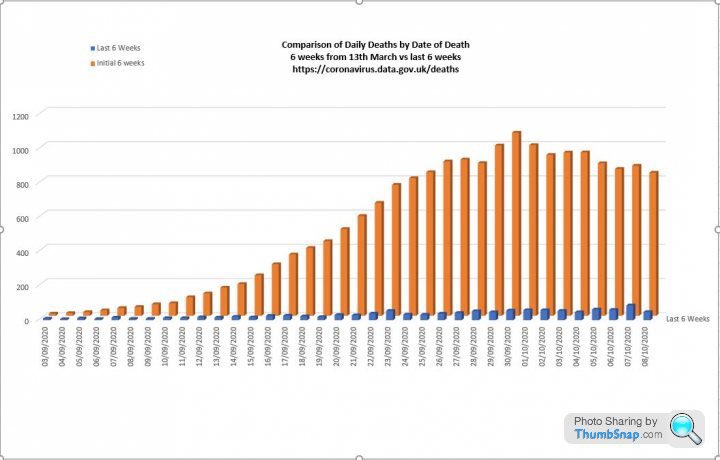 Meanwhile, the number of new cases yesterday was 13,972 for the whole of the UK, up from 12,872 on Sunday. Still a long way short of the 50,000 new cases Witless and Unbalanced predicted would be announced today.
