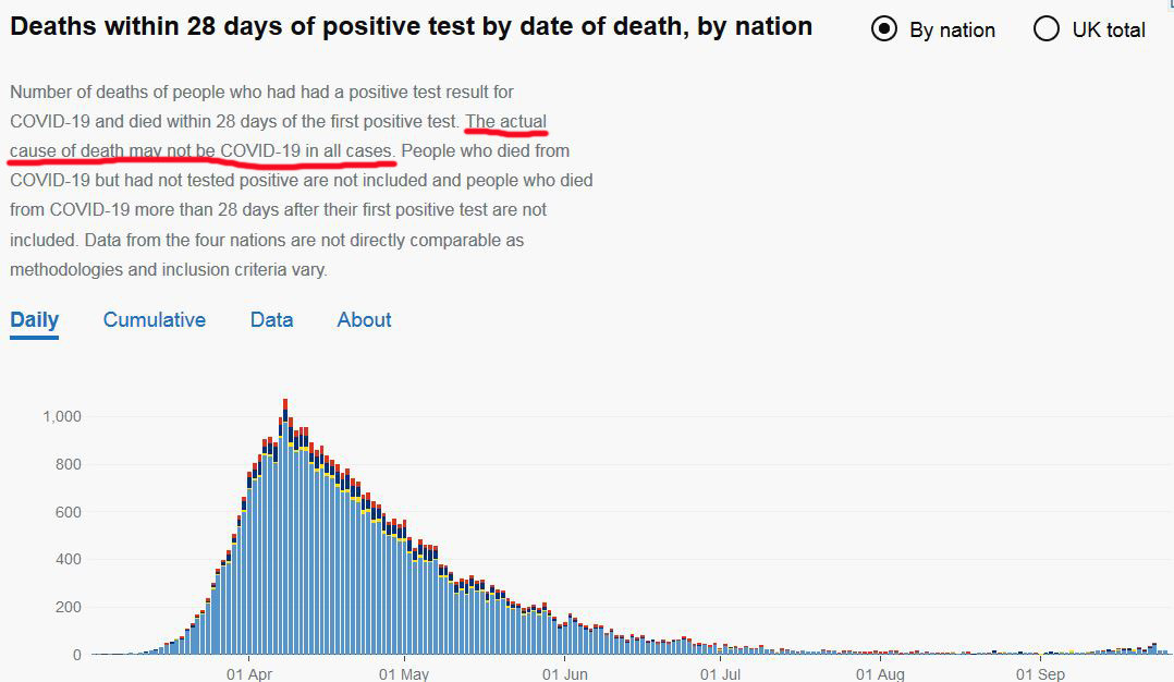 Only if you actually click on and read the article, which most people don’t, do you see that ‘One of the deaths occurred in June, two were in September and five in October. There have now been a total of 1,849 Covid-19 related deaths in Ireland’. Also, notice that the article says ‘related deaths’…
