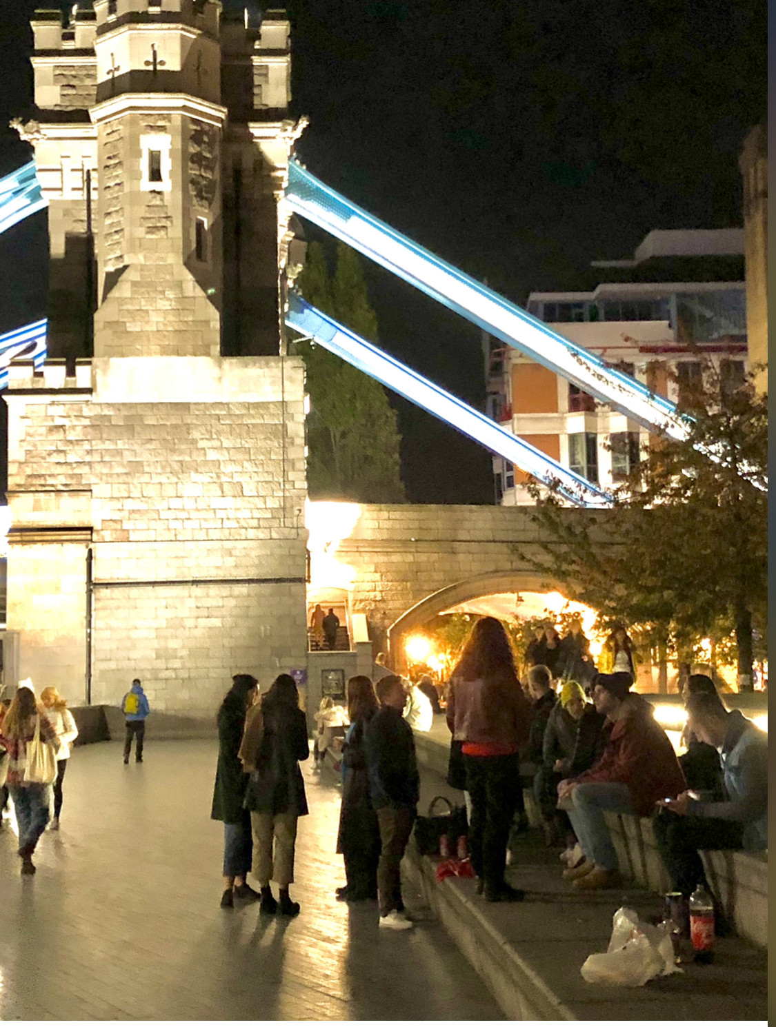 Report from Khanistan during Stage 2 (or something). Out to dinner at Ivy, Tower Bridge last night. Just as busy as last time with single-household tables containing strange single-household personnel. Masks on movement (except the JL two). However – all along the riverside were a whole series of ad hoc ‘parties’ & drinking picnics with twenty-somethings – mostly maskless sticking two fingers up to the mad Mufti and his plodforce, none of whom were in attendance. The young have just nudged up a notch in my estimation.
