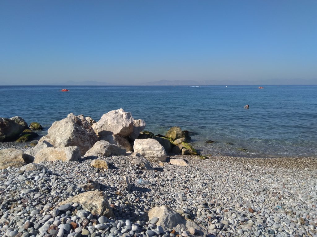 Don’t get me wrong. Rhodes is quiet and it’s clear most of the bars and restaurants are fairly empty though the hotels are moderately busy. There are Covid signs around, and plenty of hand sanitizer. The aircraft, despite following one after another, are far fewer than normal.