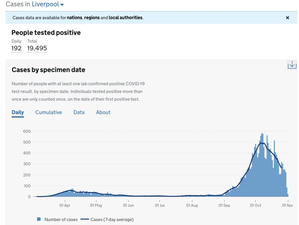 And why is Liverpool the first city to be used in this experiment, given that the number of daily cases in the city is falling? If the Government is trying to persuade us that the traffic light system isn’t working, putting Liverpool in the spotlight is unwise since it shows that placing the city in Tier 3, which happened on October 14th, has significantly reduced the R number.