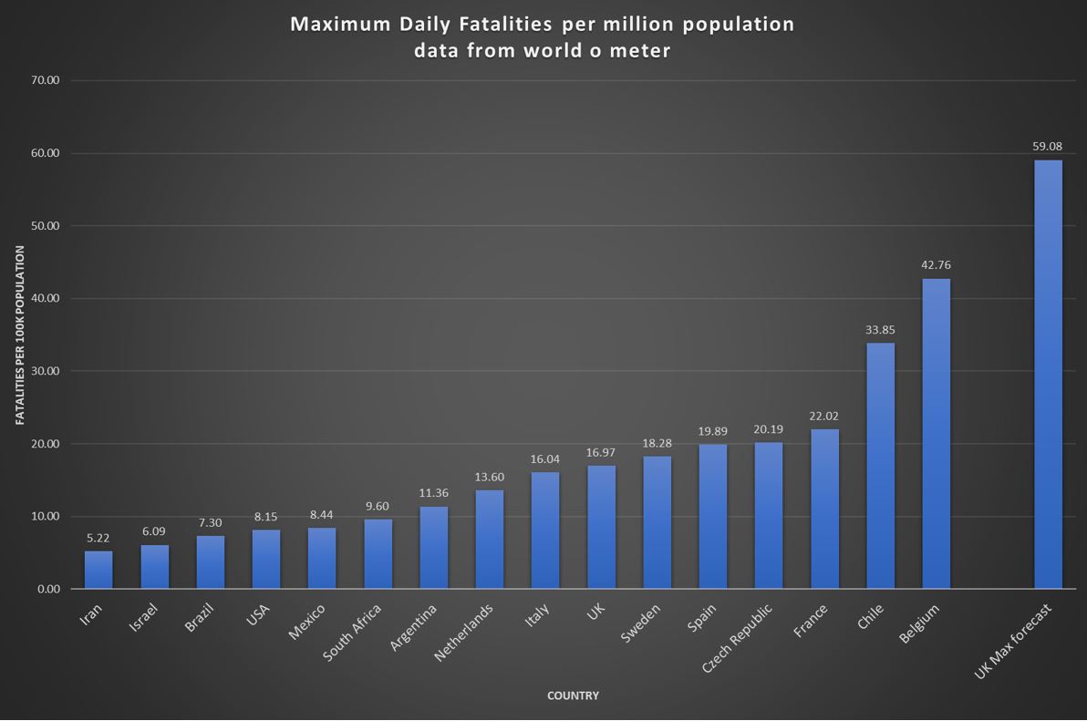 - 4,000/day is three times higher than the peak rate for Brazil, which has a population three times greater than the UK’s and a pretty laissez faire attitude to the spread of COVID-19