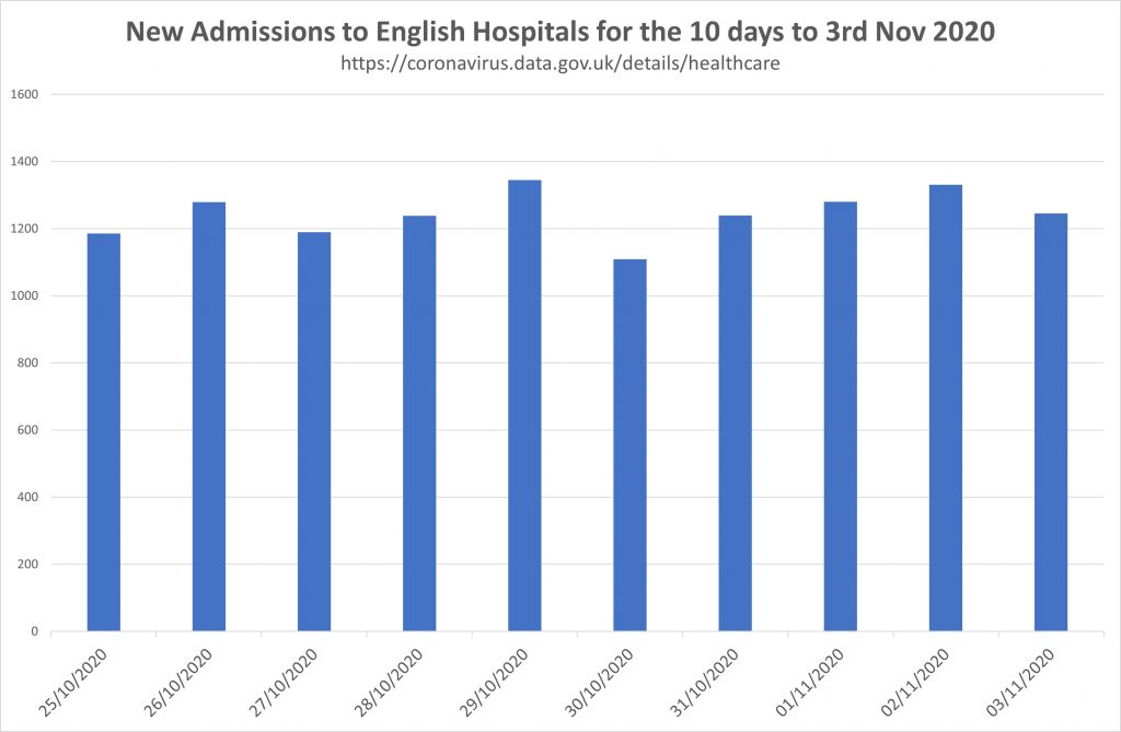 Hospital Admissions with COVID-19 in England Flat For 10 Days