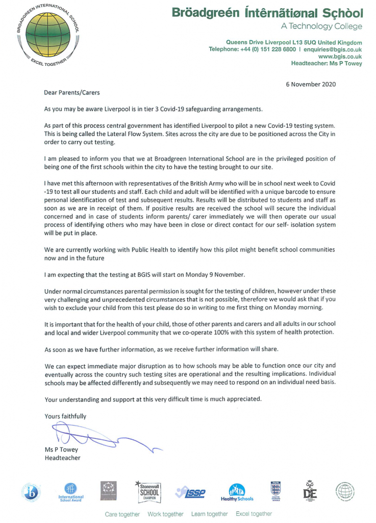 Stop Press: The headteacher of the Broadgreen International School, a technology college in Liverpool, sent a very sinister letter to parents yesterday, informing them how “privileged” they should feel that the army will be in the school on Monday testing all the children, marking them with a barcode and detaining those who test positive. The head adds that parental permission won’t be sought because “under these very challenging and unprecedented circumstances that is not possible”. Surely, this isn’t legal?