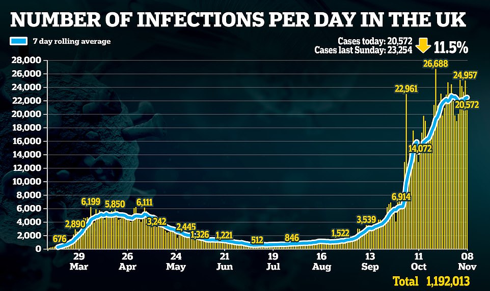 Today’s figure come on the fourth day of England’s national lockdown, with Tory MPs warning Boris Johnson he will face a “massive revolt” if he tries to extend it beyond December 2nd.