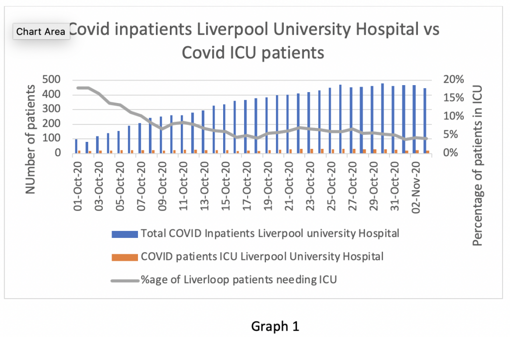 Either way, the number of Covid patients in the ICU at Liverpool’s main hospital has fallen from 29 on Oct 22nd to 19 on November 3rd. This does not look like a hospital in imminent danger of collapse.