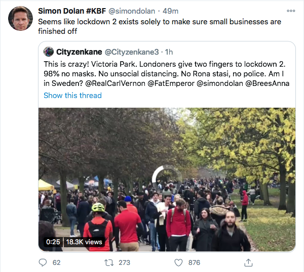 If 37% of staff in Yorkshire and the North-East were absent for Covid-related reasons on November 2nd, that was clearly what was fuelling anxiety, not the ‘second wave’ baloney that Witless and Unbalanced obediently trotted out. (A reader made the same point: the NHS has a manpower problem.)