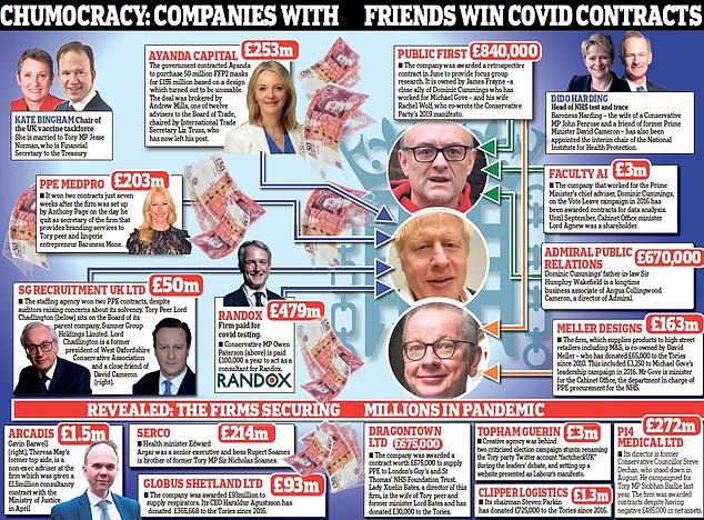 Ministers, MPs and civil servants could refer businesses to a ‘high-priority’ lane and firms which were granted this VIP access were more than 10 times as likely to be awarded a contract as those in the ordinary lane.