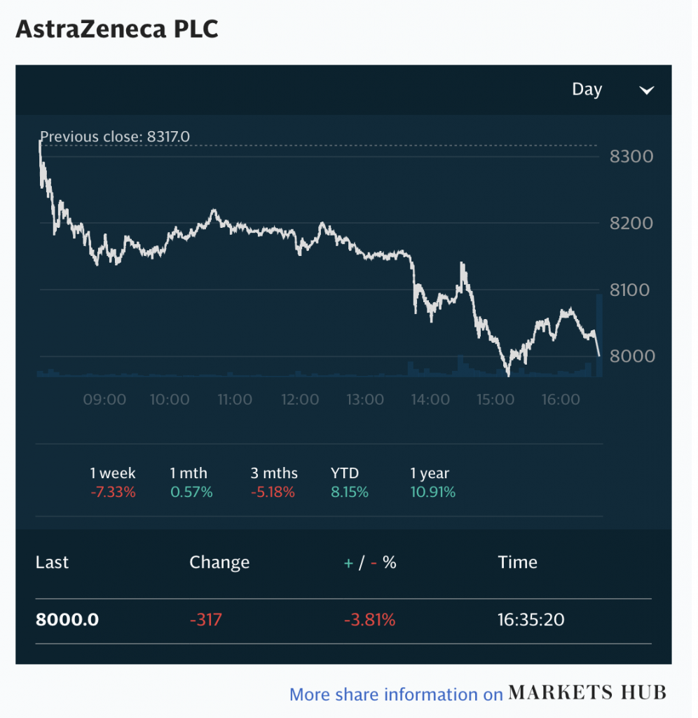 Stop Press: AstraZeneca’s share price has fallen in the US following doubts about the likelihood of it receiving FDA approval.