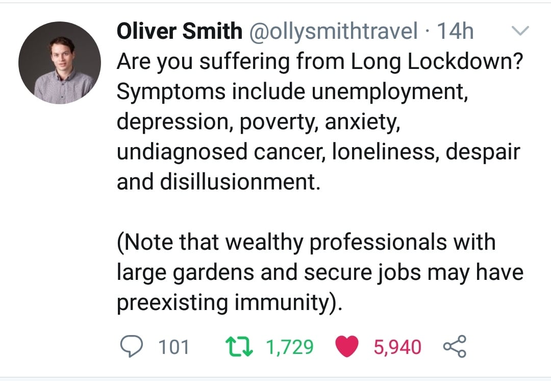 I think people have been obedient until now because they assumed things were going back to normal. As a propaganda thing on the BBC said the other day “Why be the last to die just as the vaccine arrives?”. But as I think we can all tell (as predicted), that the vaccine isn’t going to be allowed to be the magic bullet. Might people now realise that there is no point in not risking dying, if this is what life is going to be from now on?