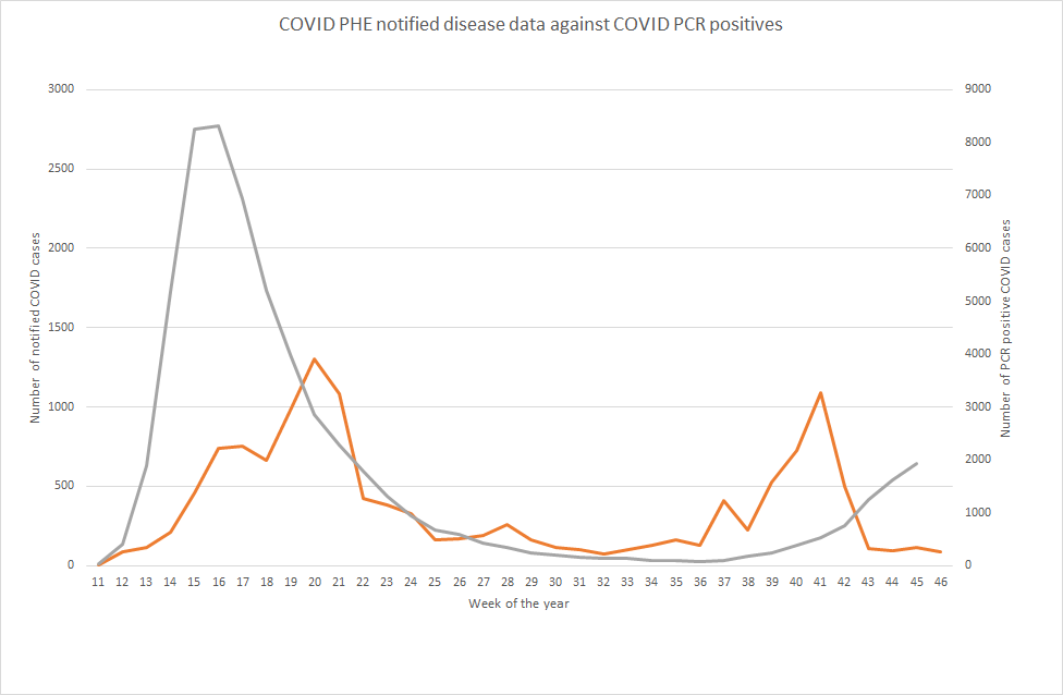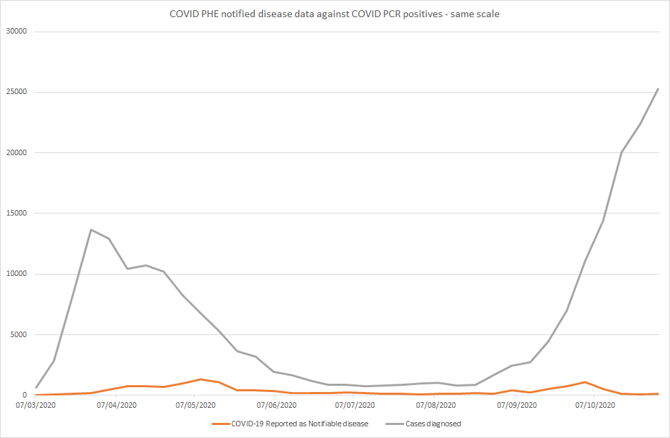 The first impression from examining the overall notifiable disease data is that the numbers are far lower than PCR positive results but that there was a similar level of disease present in Autumn as Spring. However, examining this data on a regional basis shows that a group of enthusiastic doctors in the South West may have created a distortion in the Autumn data. Removing this distortion would result in this dataset concurring with multiple other sources to indicate that the epidemic phase of the COVID-19 outbreak was, as previously stated, over in Spring.