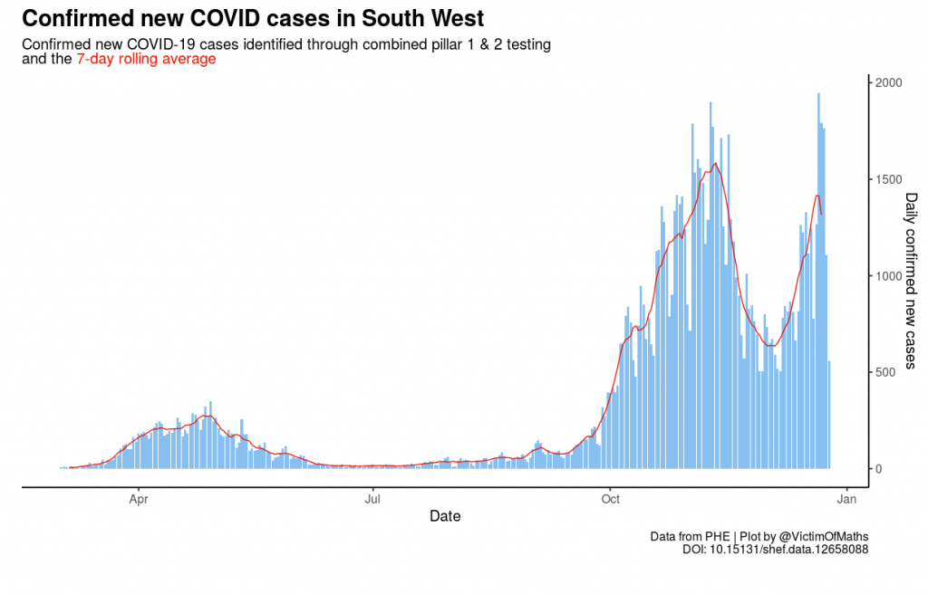 Figure 3. Cases of COVID diagnosed in the whole South West region.