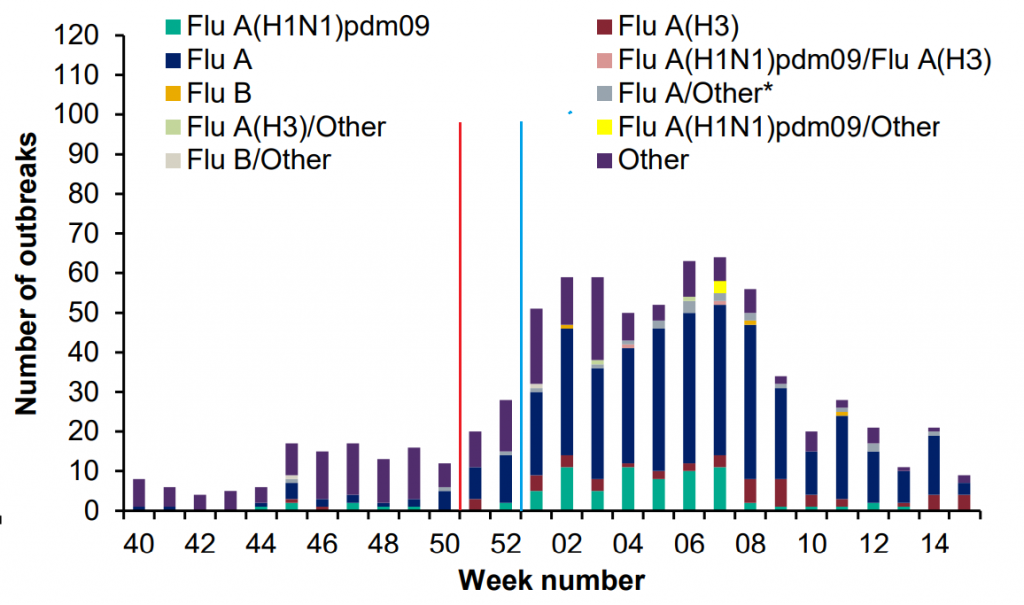 But the fact remains that this is the least likely outcome. Out of the four flu seasons listed above, this pattern only held in one – so, on that crude basis we might say that this is a 1 in 4 (25%). Here is a bit more data from a previous year’s report.