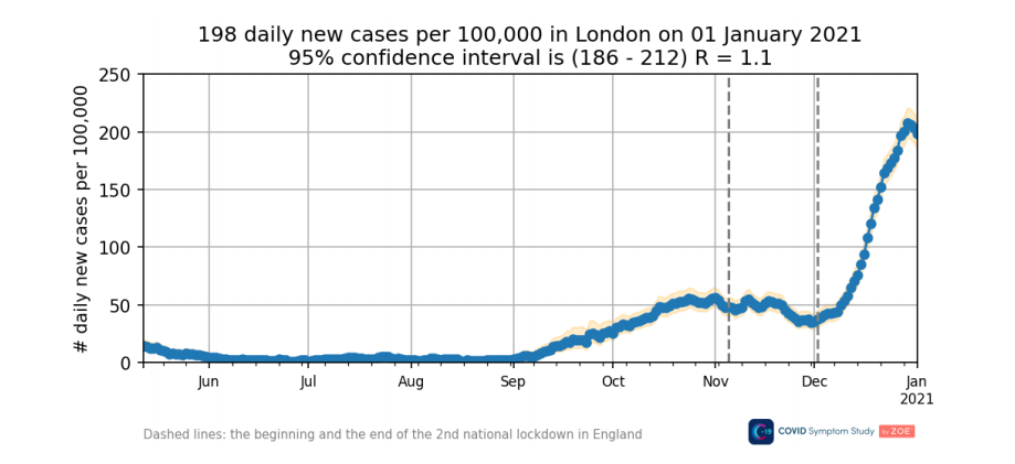 How can this be when London is dominated by the new variant, said to be 70% more transmissible and said to be uncontainable by lockdown without closing schools by researchers at Imperial College?