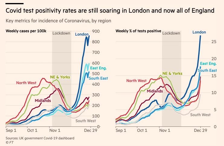 Morning! Just want to add my reflections before homeschooling We are clearly in a classic PCR driven casedemic We had a spike in March/April and now the governing classes are on a hair trigger But covid-19 seems to be now just a seasonal virus – just one of the 200 that go round and knock elderly people over the edge Ignoring PCR and looking at ZOE app data, March/April peak was 2.2 million infected (symptomatic). Currently its 700,000. Current new infections are levelling off. The R value peaked on 18th Dec and is trending down. I expect a peak in new daily infections in the second week of Jan. The number of infectious in society will peak 10 days later. This all agrees with peak overall mortality being 5th Jan and peak week mortality usually being second week of Jan. Through Jan and Feb infections will go down, false positives will go down, ‘pressure’ on the NHS will go down. As we come out of panic mode people will look at the data more objectively. There is no way that in the Summer after we look back and see nothing more than a normal winter season that predictions of next… Read more »