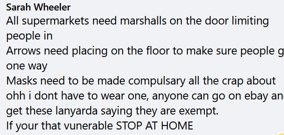I’ve going to start asking people who wear masks in the street if they wear them inside their home and go to bed in them. If they answer No. I shall say .. have you got special filters on your doors and windows to stop the outside virus laden air getting in?