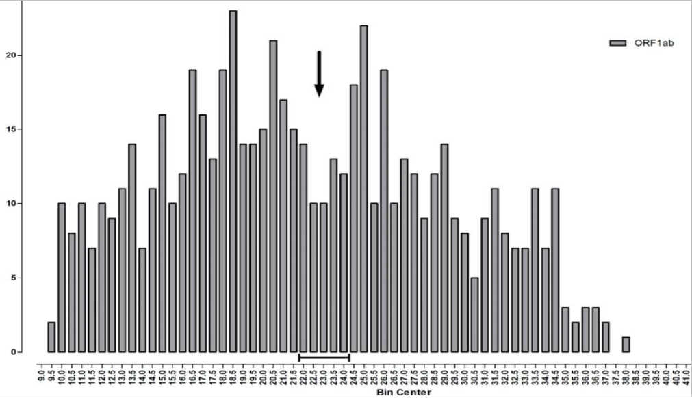 Chart 7: Frequency of Ct values for ORF gene positive samples