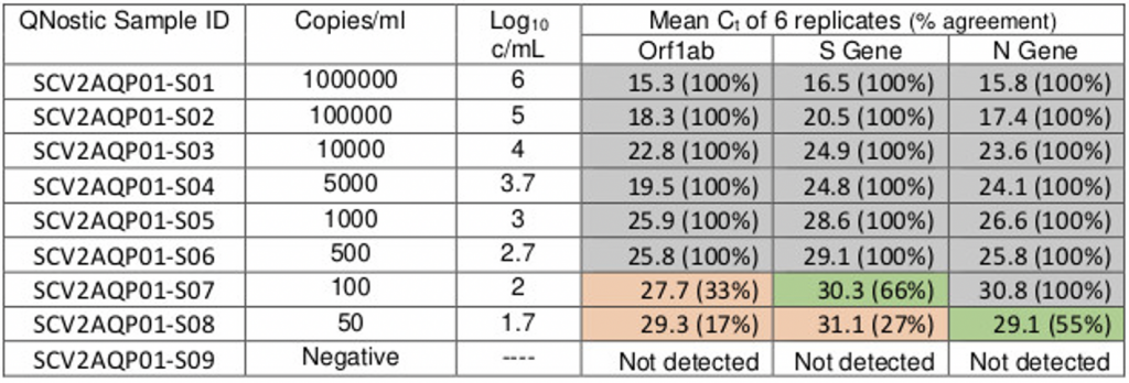 Table 1: Ct values for 3 gene targets & viral copies per ml