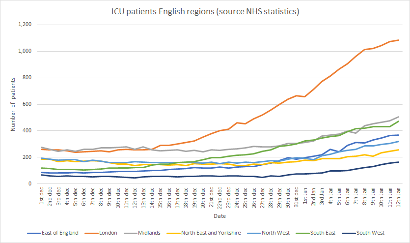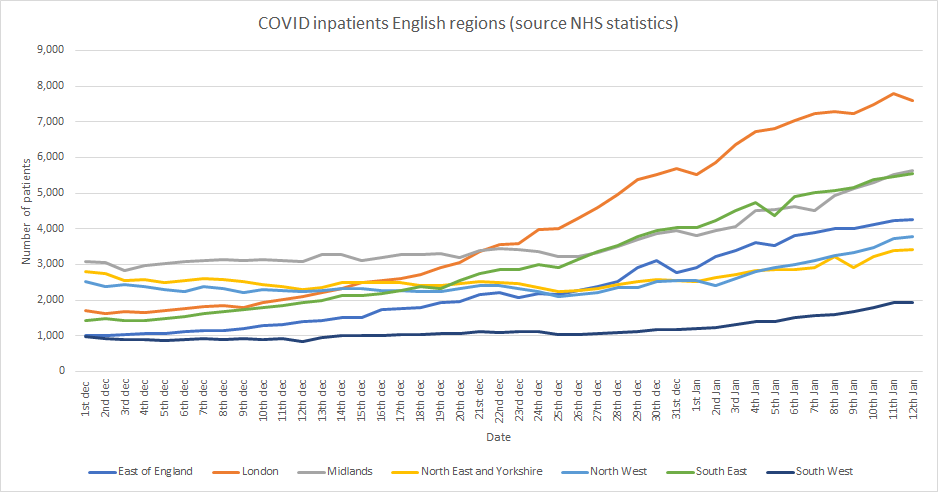 Having been round the block a few times I have always noticed that the first two weeks in January are the busiest for respiratory illnesses, both in terms of morbidity and mortality. I do remember one recent year when the local undertaker had to get additional storage space , although it never made the media as it would do today. This current ” surge ” will pass and no doubt the media will claim it is due to the vaccine or the lockdown. I doubt either of those claims would be true.